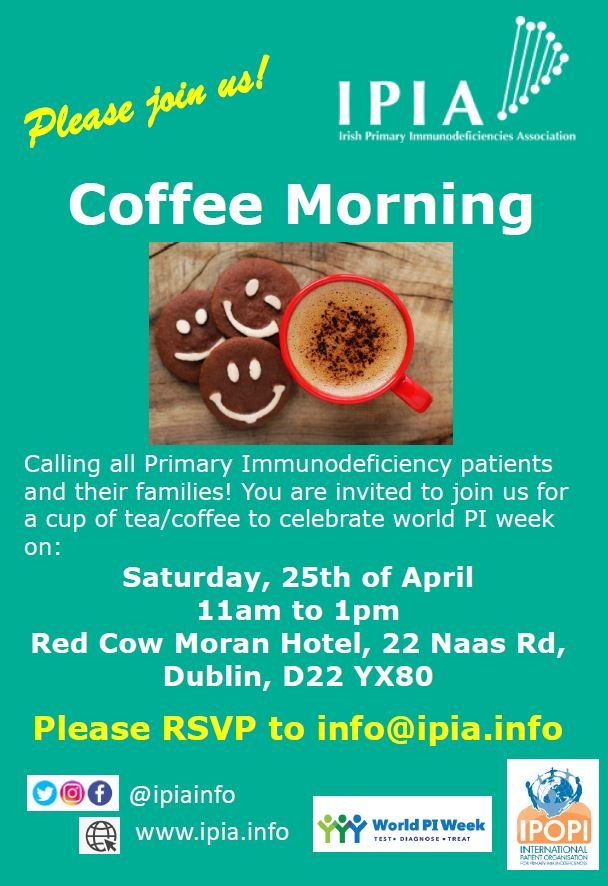 World Primary Immunodeficiency (PI) week #WorldPIWeek – is celebrated every year in April. This year was from 22nd to April 29th. The Irish Primary Immunodeficiency Association (IPIA) joined forces with…